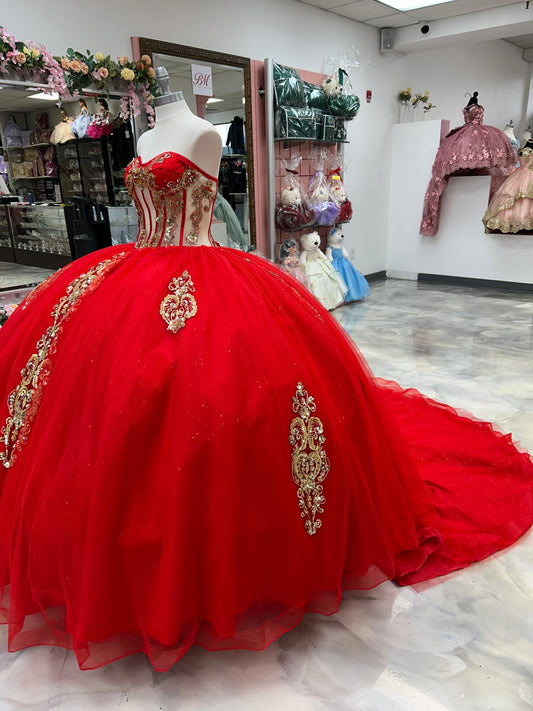 Step into the spotlight with this enchanting Tiered Floral 2-Piece Quinceanera Dress by Ragazza M47-147. Featuring a strapless sweetheart...