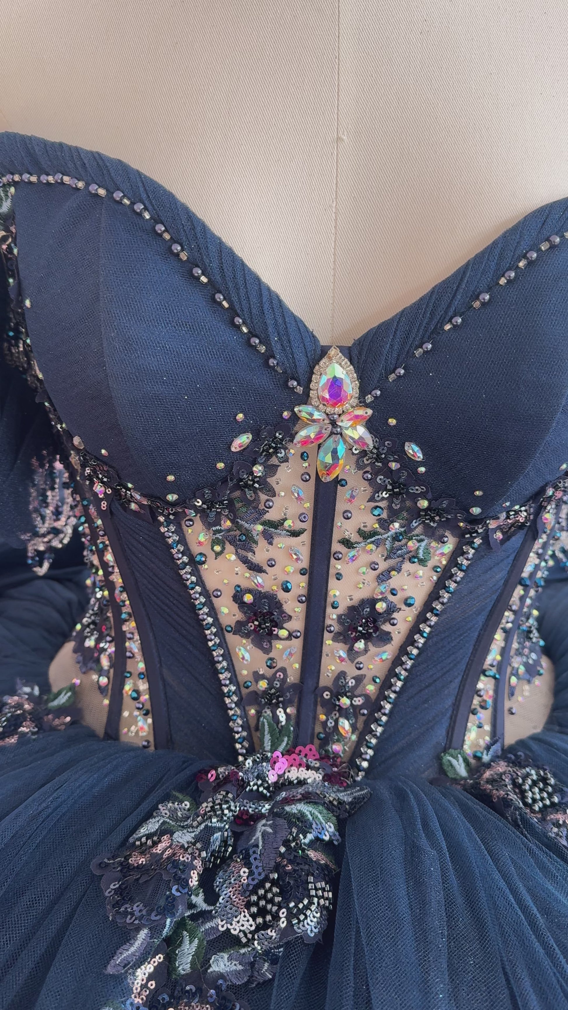 This stunning dress combines sophisticated elegance with eye-catching sparkle for a truly unforgettable look. Customizable to your perfect fit, it's designed to turn heads at any occasion. With a 4-6 month production timeline, we recommend ordering now to secure your show-stopping piece. As featured on our TikTok, this is the dress that makes a statement!