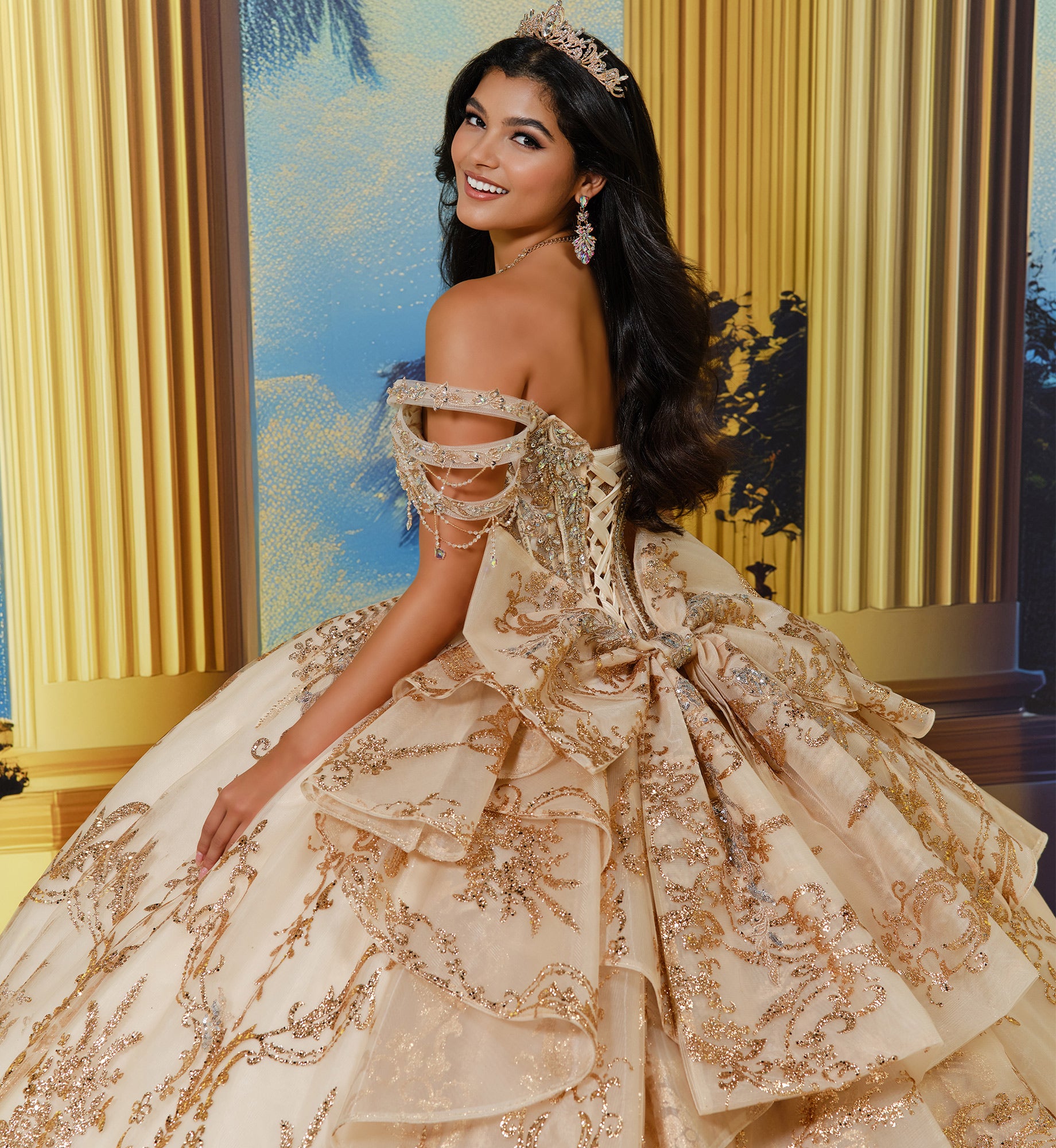 Features Pockets, Detachable Off the Shoulder Straps, Back Modesty Panel and Capelet Included